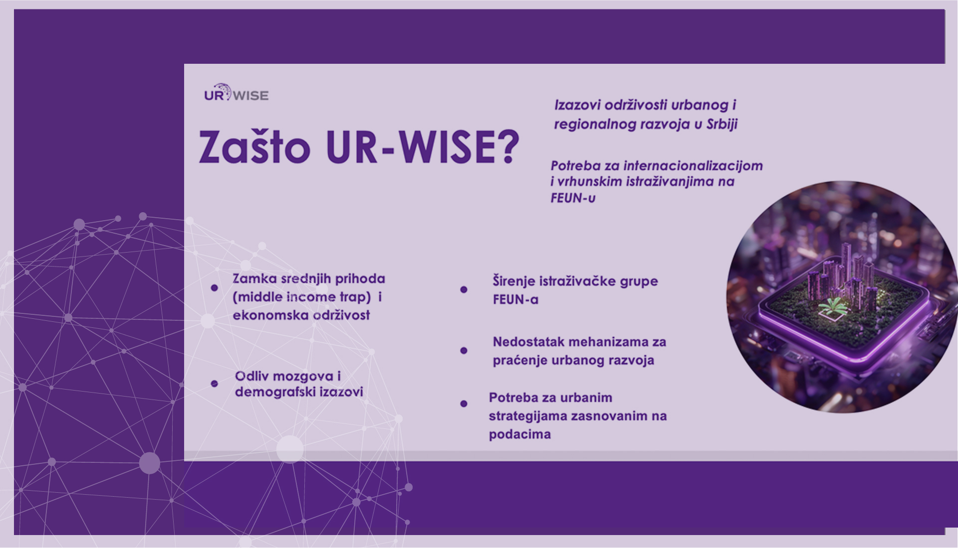 At the invitation of the European Training Academy (EUTA), the coordinator of the UR-WISE project, Prof. Jelena J. Stanković from the Faculty of Economics, University of Niš, participated in the event “My First Horizon Project”. The event gathered around 70 researchers from 26 scientific institutions across Serbia, with the aim of encouraging and empowering the academic community to successfully apply for Horizon Europe funding.