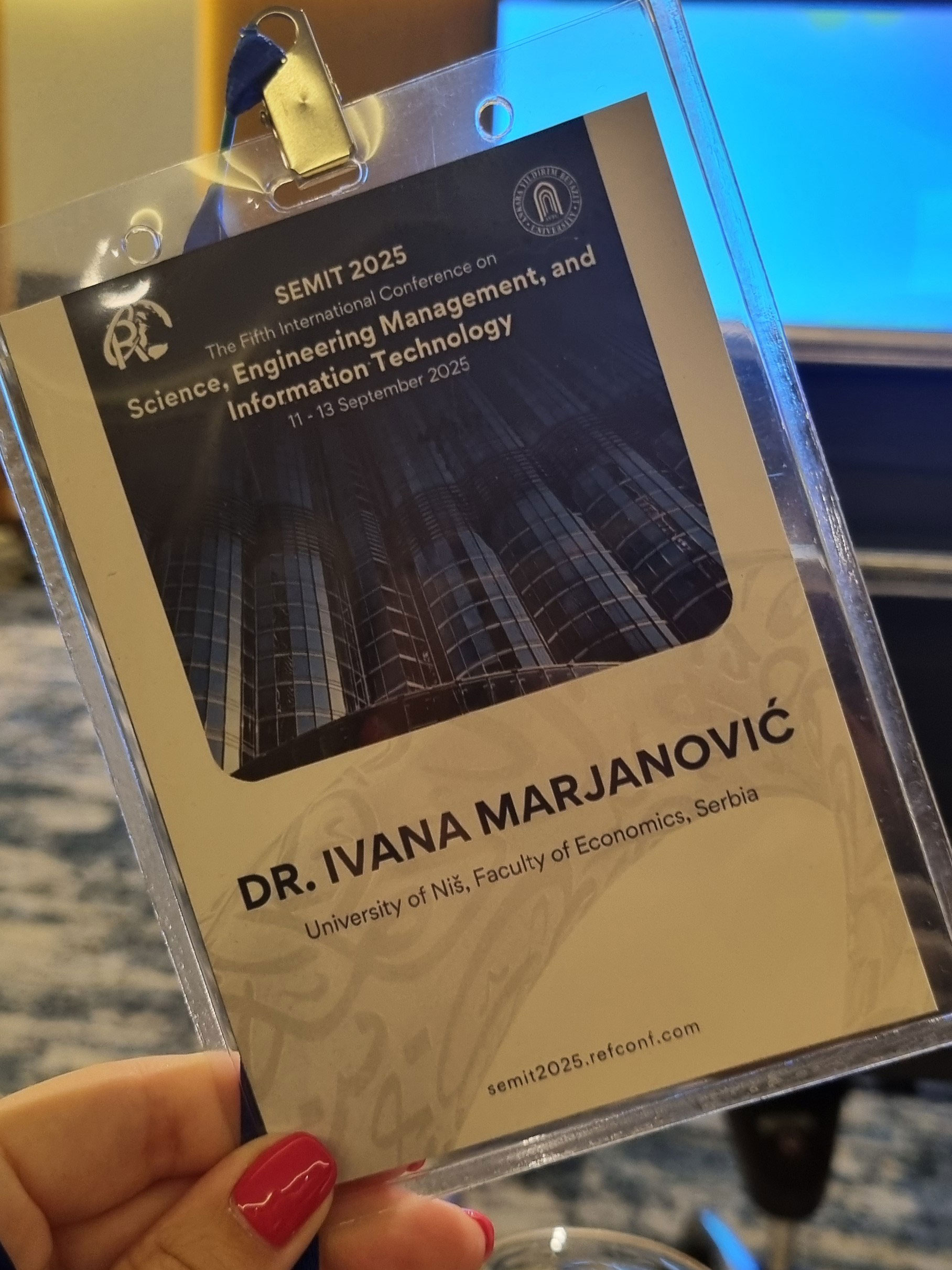 Members of the UR-WISE project team from the Faculty of Economics, University of Niš took part in the International Conference on Science, Engineering Management and Information Technology (SEMIT 2025) , held from 11–13 September 2025 in Dubai, UAE. The conference, organised in hybrid mode, brought together educators, researchers, industry experts, and students from across the world.