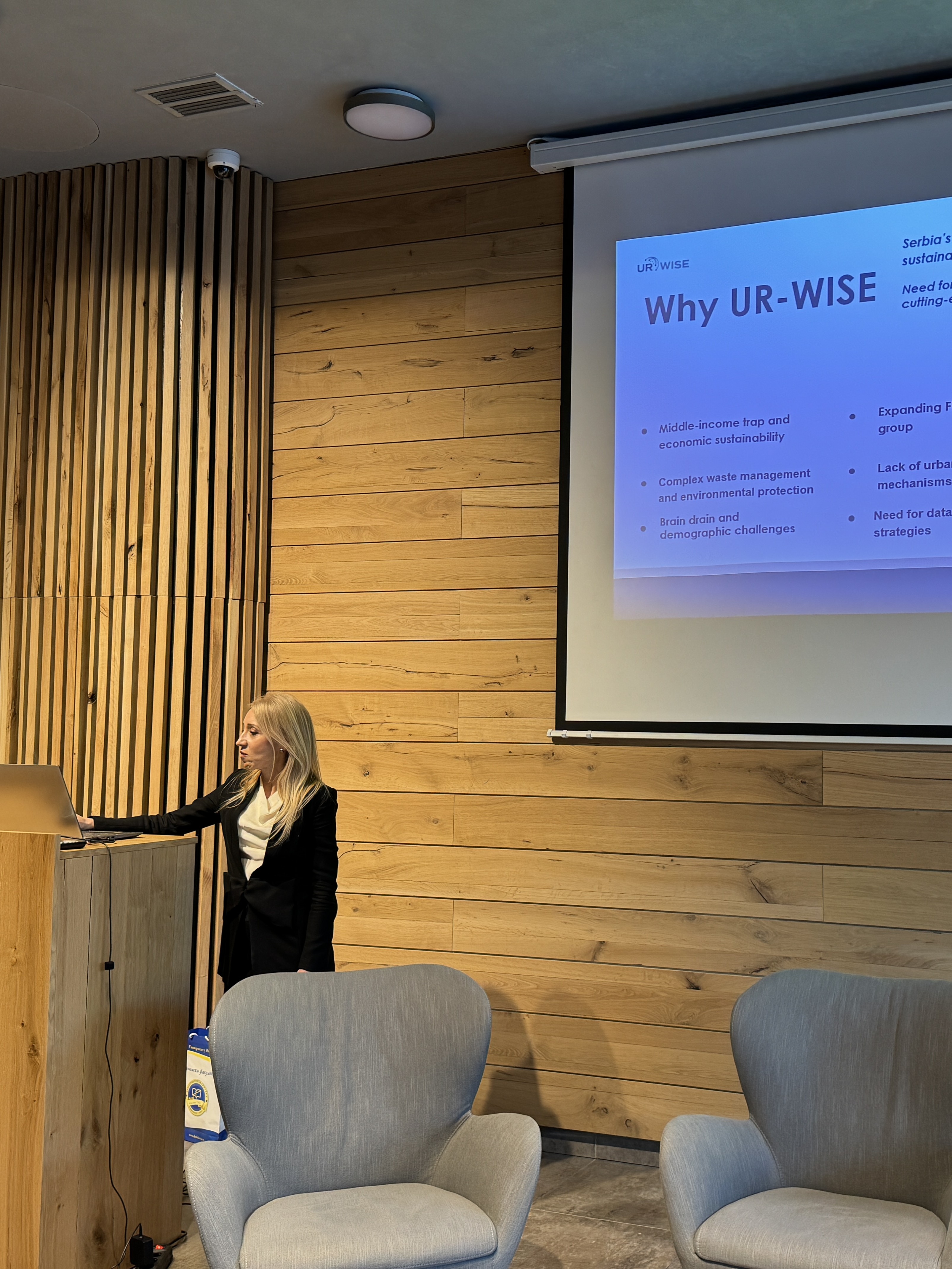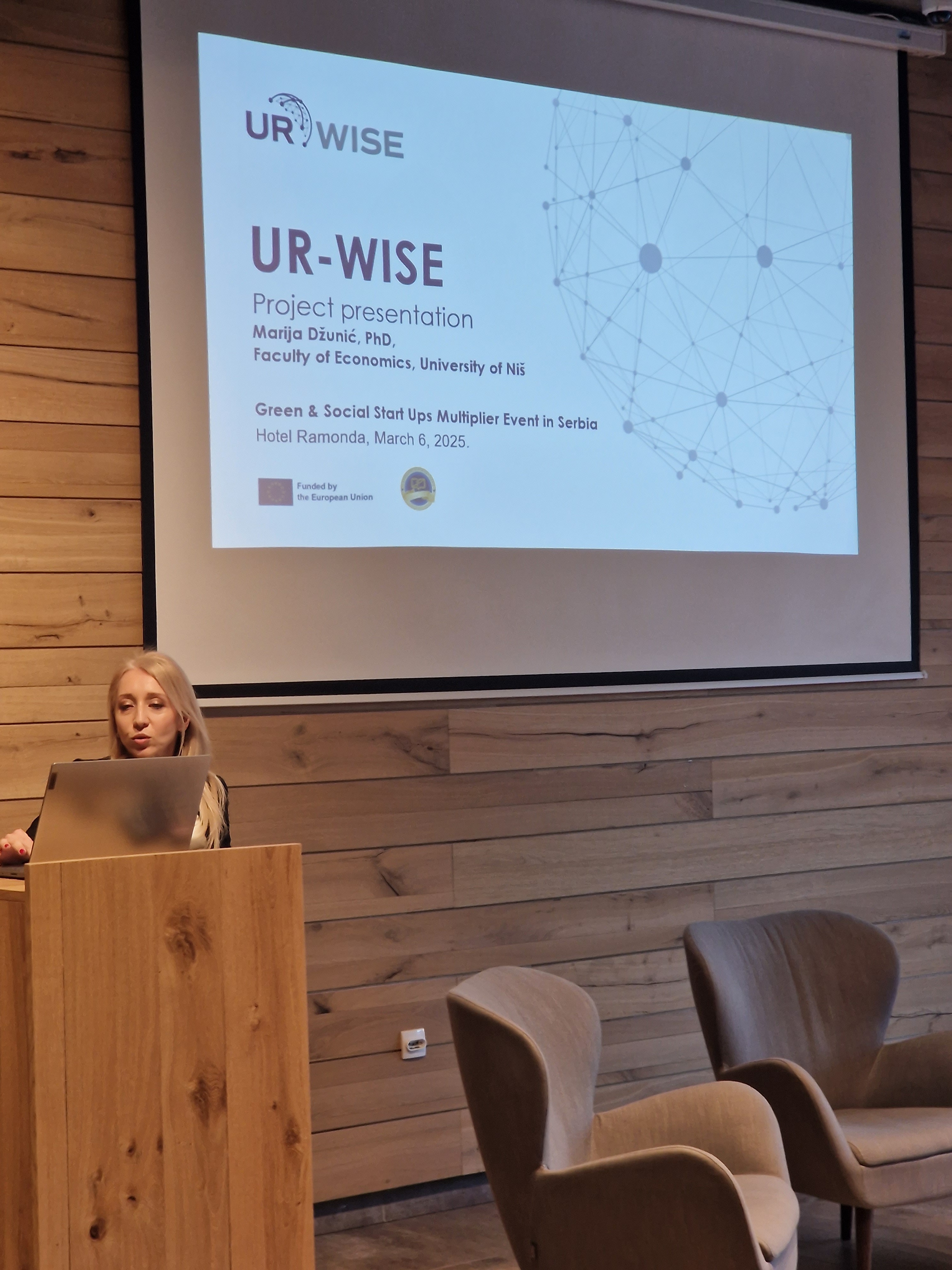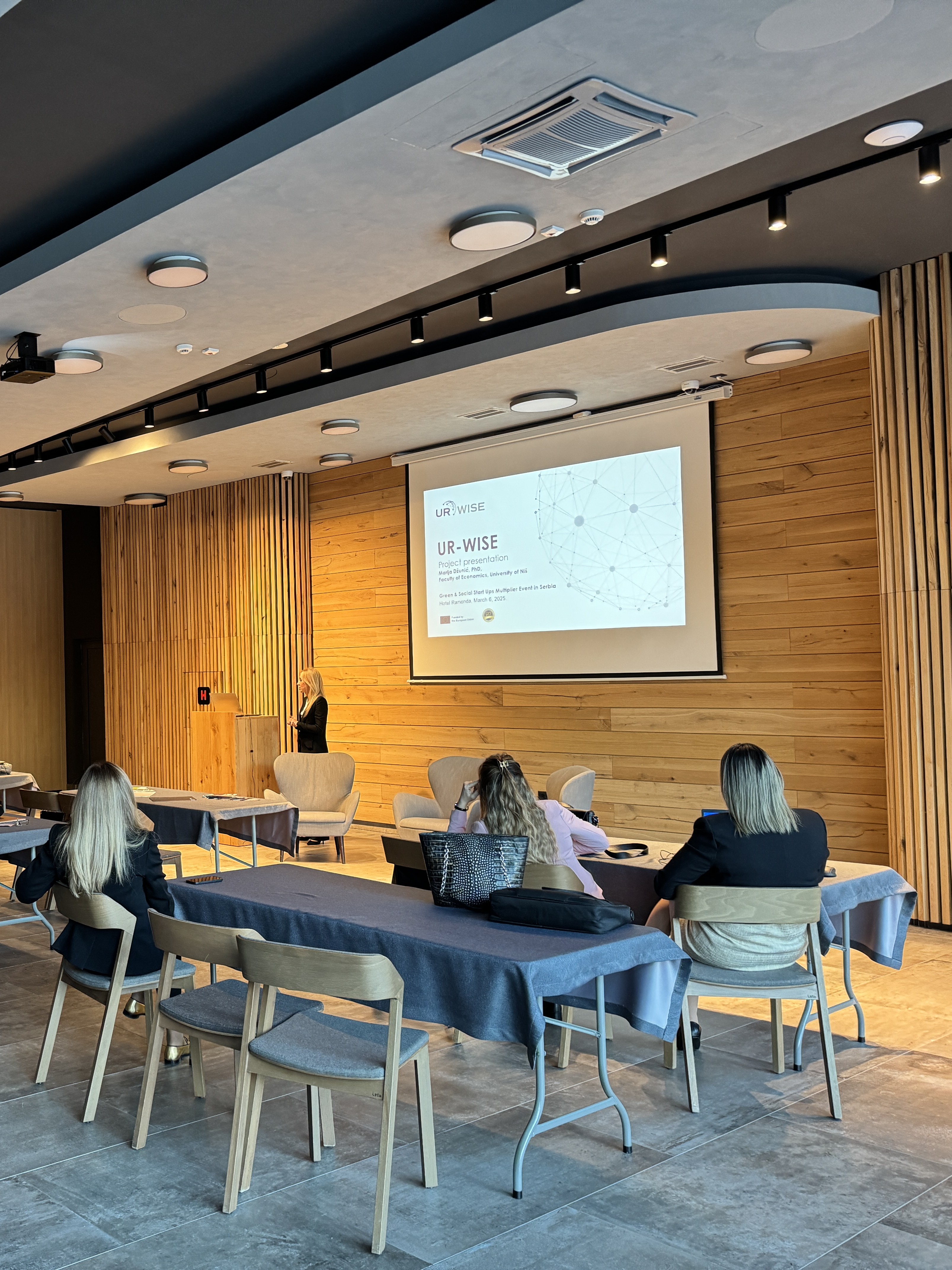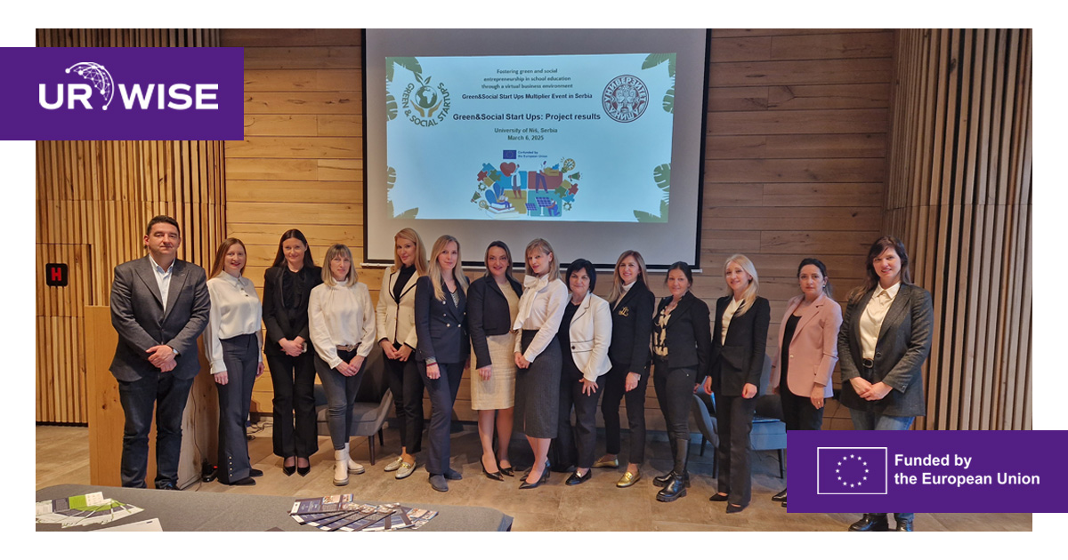 The UR-WISE project was introduced to a wide audience of stakeholders from academia, public institutions, civil society, and the private sector during the Green&Social Start Ups Multiplier Event, held on March 6, 2025, at Hotel Ramonda, Rtanj, Serbia.
